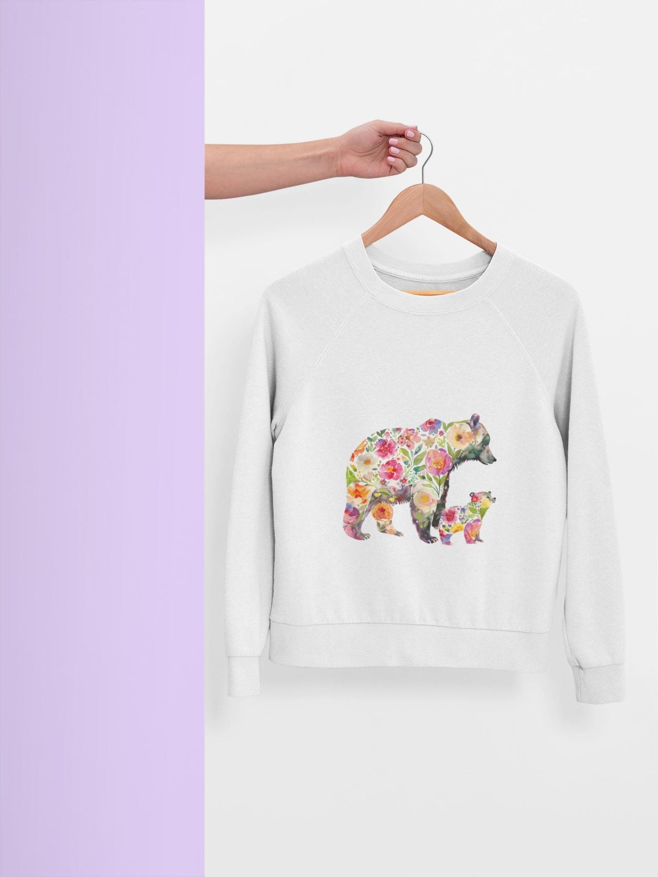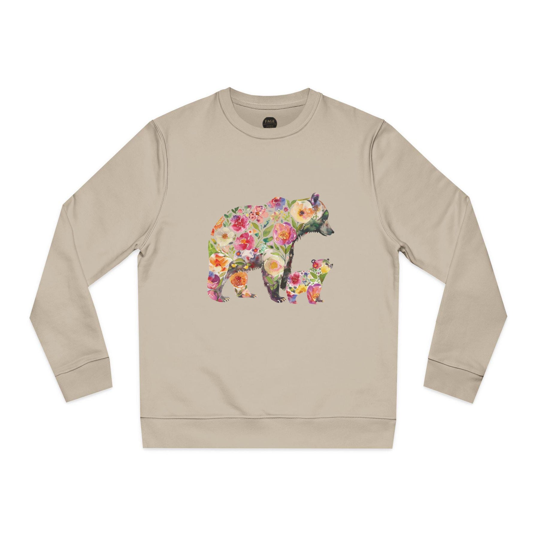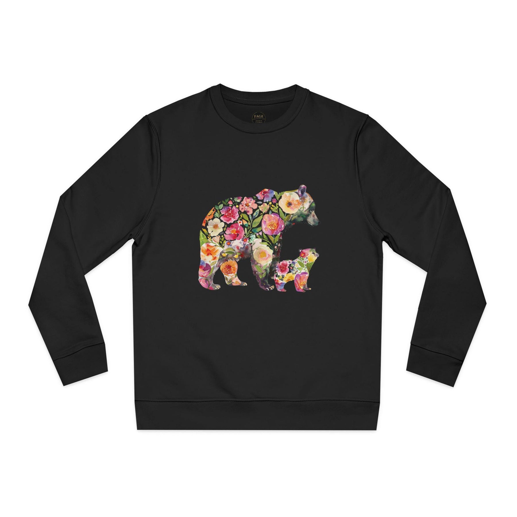This floral bear sweatshirt captures a quiet, tender moment between a mama bear and her cub—soft petals framing a gentle silhouette, like sunlight through the trees. Wear it when you want to bring a little woodland calm into your day: morning walks with coffee, slow weekends at a cabin, or cozying up during spring evenings. The relaxed cut drapes easily over leggings or jeans and the organic, brushed cotton blend feels warm against the skin without weighing you down. It speaks to people who love nature, motherhood, and handcrafted, sustainable pieces—those who care about where their clothes come from and want a design that feels personal and soulful. The pink floral motif adds a soft, feminine touch while keeping the outdoorsy vibe intact. Reach for this when you want comfort that tells a story—of gentle protection, slow afternoons, and the small rituals that matter most.