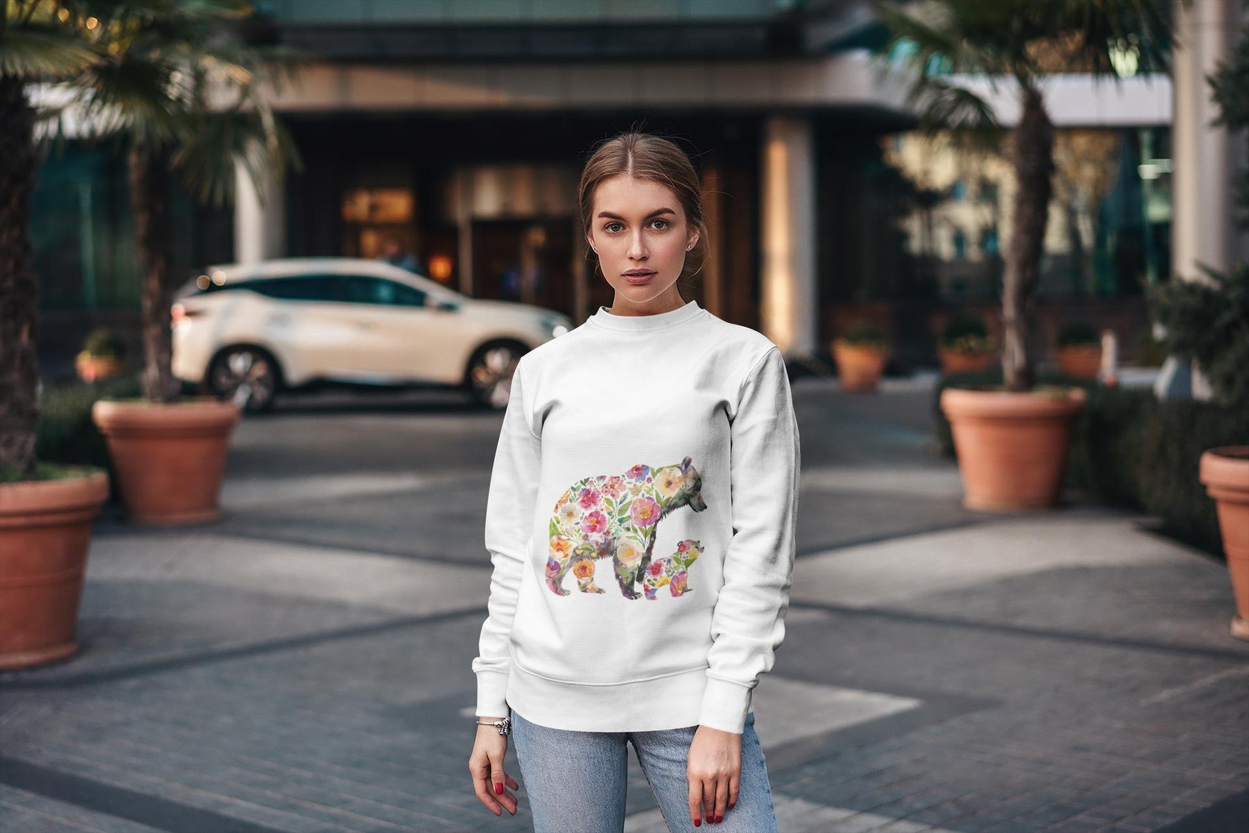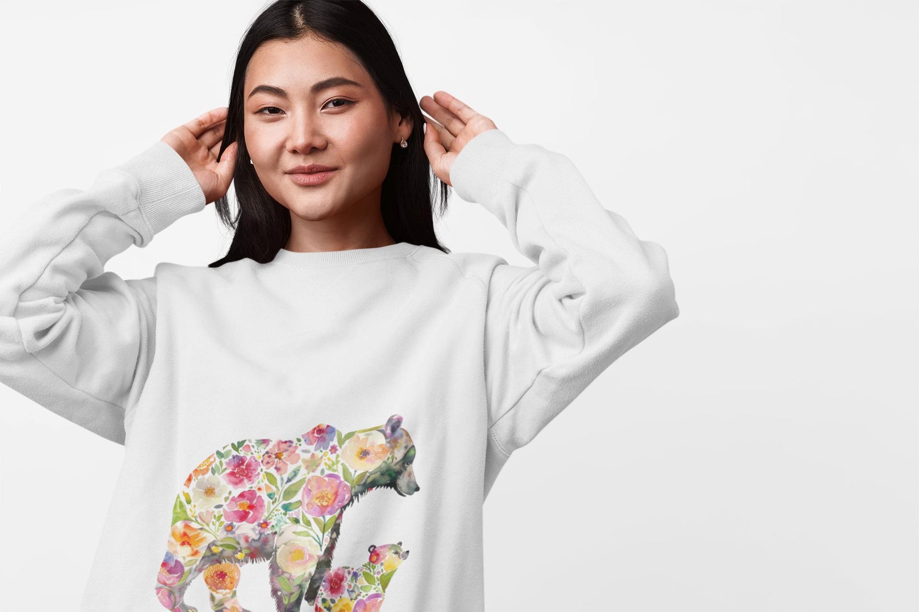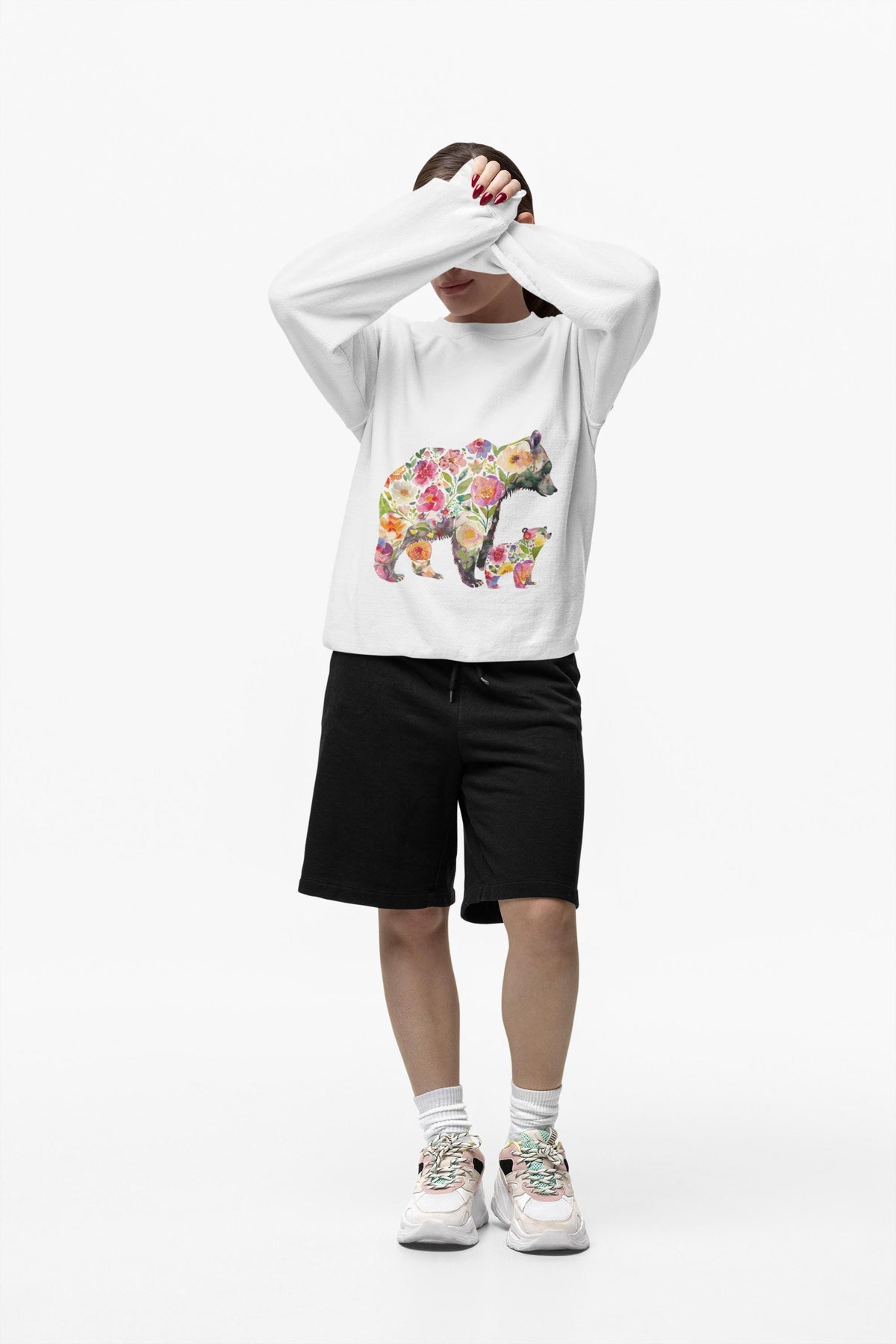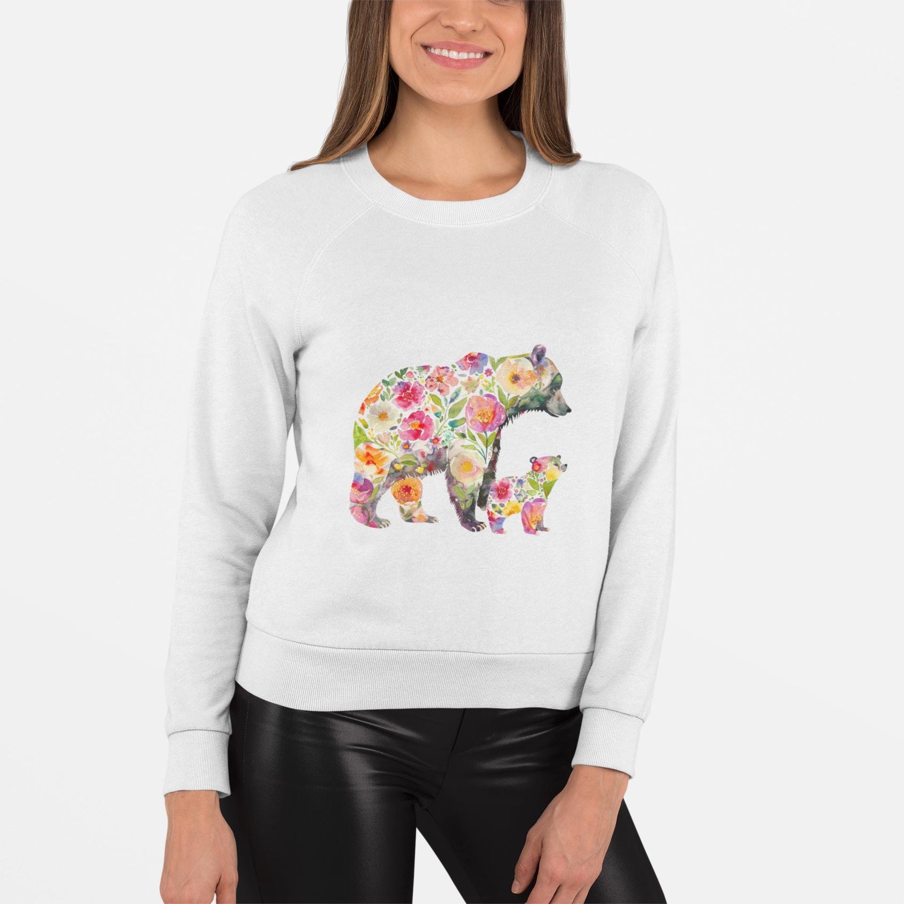 This floral bear sweatshirt captures a quiet, tender moment between a mama bear and her cub—soft petals framing a gentle silhouette, like sunlight through the trees. Wear it when you want to bring a little woodland calm into your day: morning walks with coffee, slow weekends at a cabin, or cozying up during spring evenings. The relaxed cut drapes easily over leggings or jeans and the organic, brushed cotton blend feels warm against the skin without weighing you down. It speaks to people who love nature, motherhood, and handcrafted, sustainable pieces—those who care about where their clothes come from and want a design that feels personal and soulful. The pink floral motif adds a soft, feminine touch while keeping the outdoorsy vibe intact. Reach for this when you want comfort that tells a story—of gentle protection, slow afternoons, and the small rituals that matter most.
