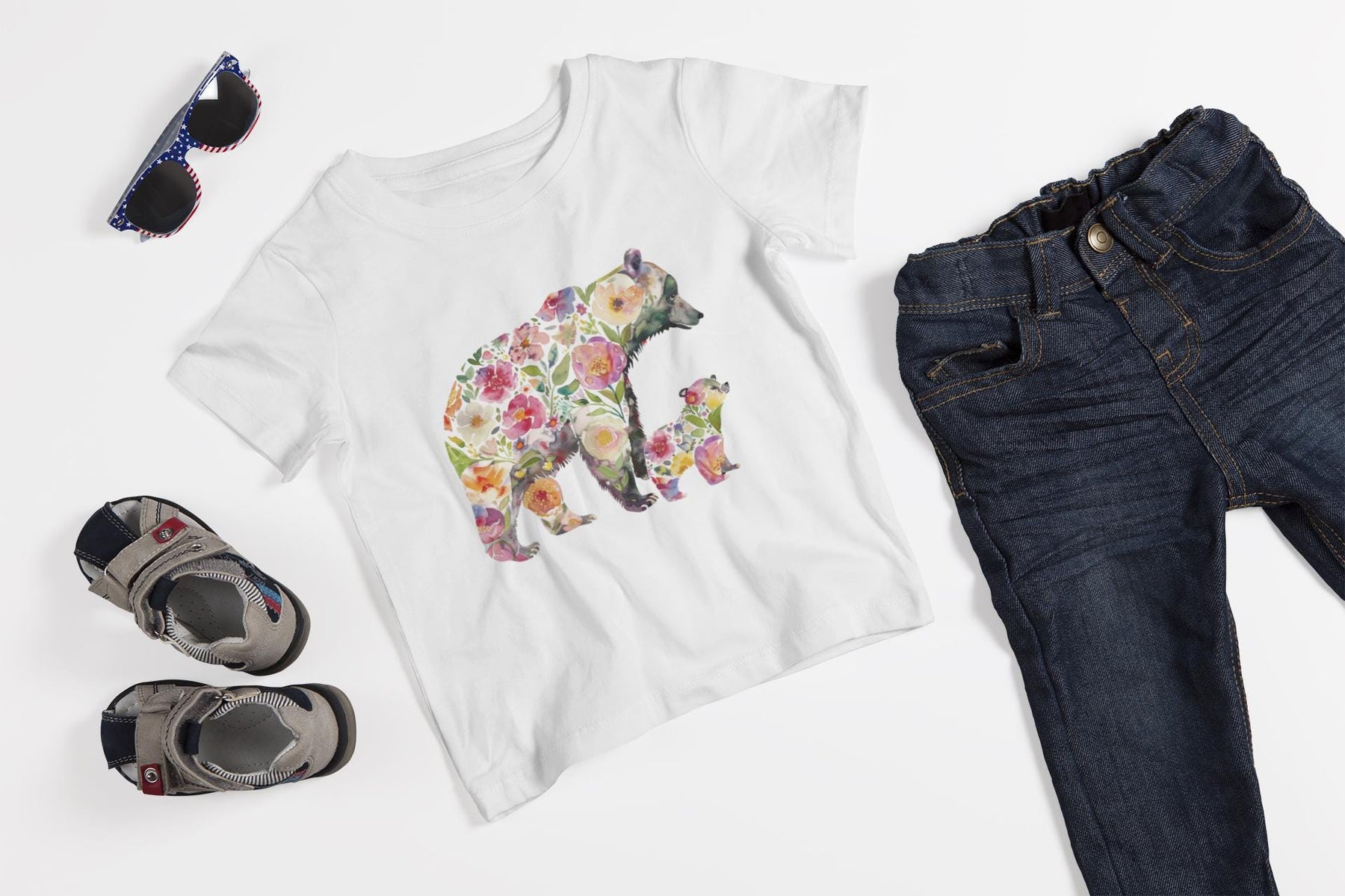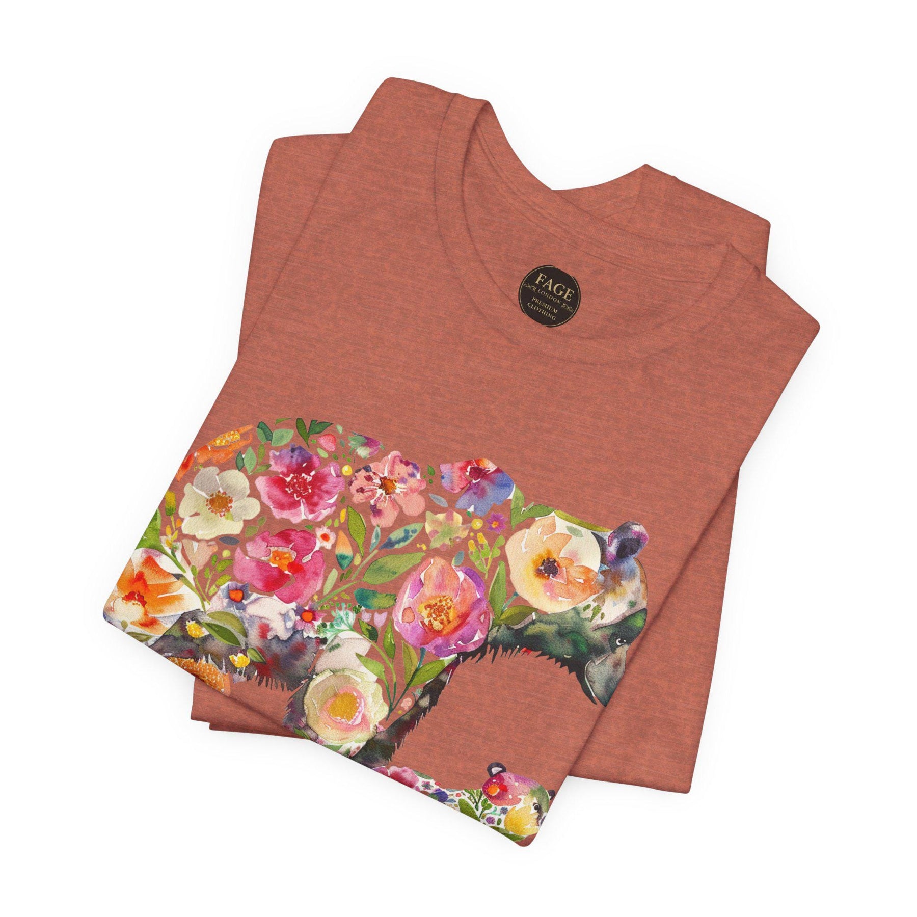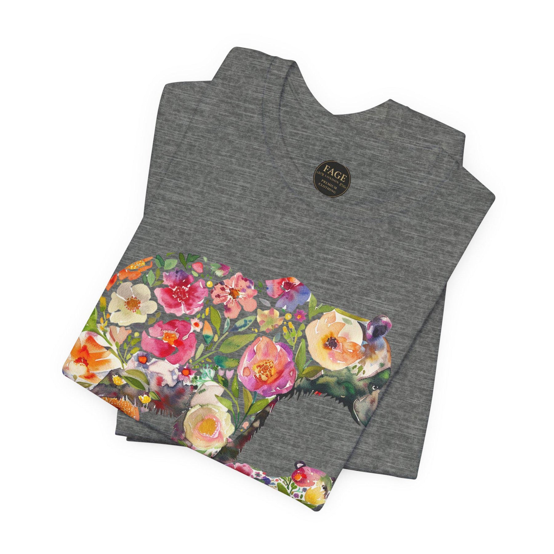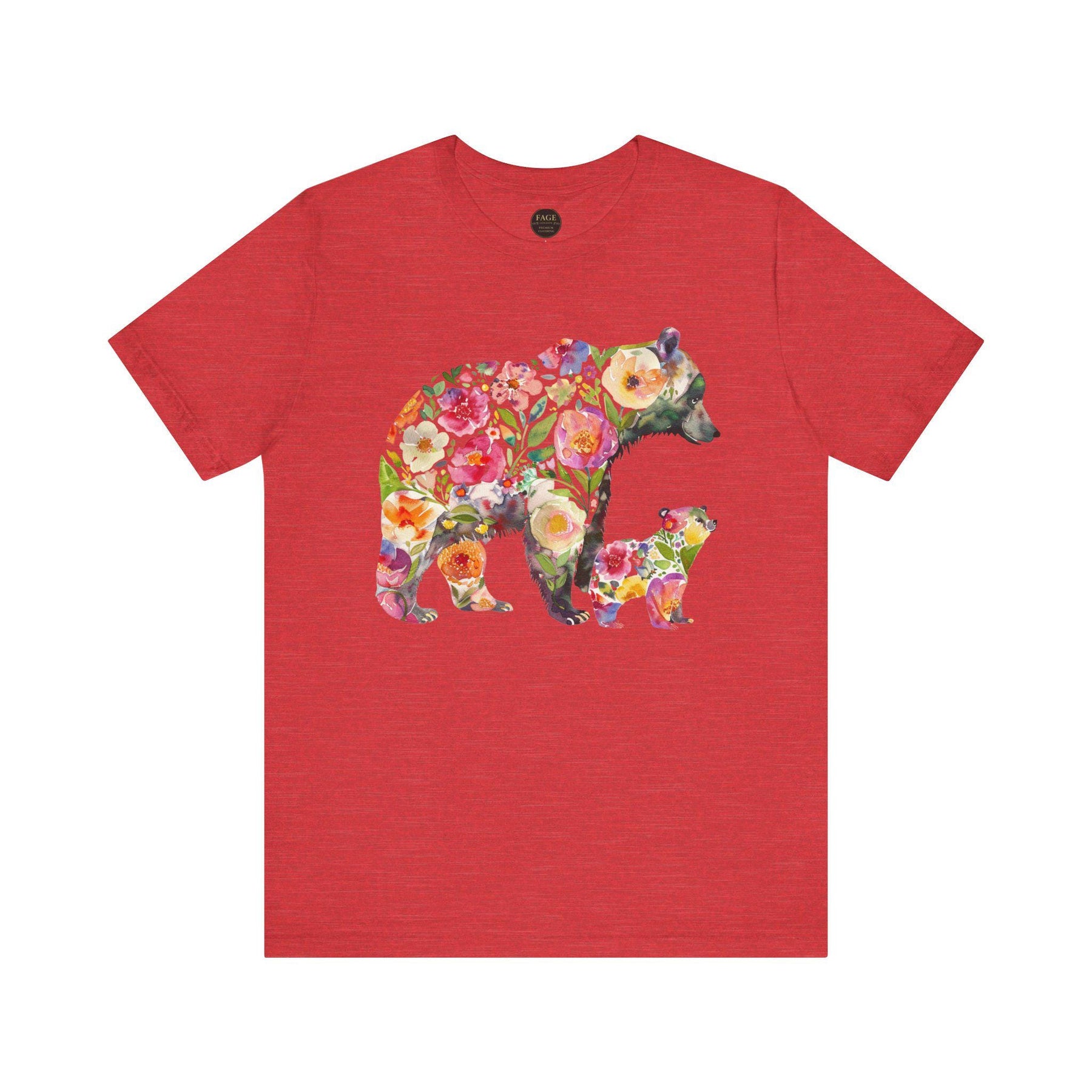 Mama Bear Floral Bear and Cub T-Shirt | Watercolor Botanical Wildlife Tee, Mothers Day Gift