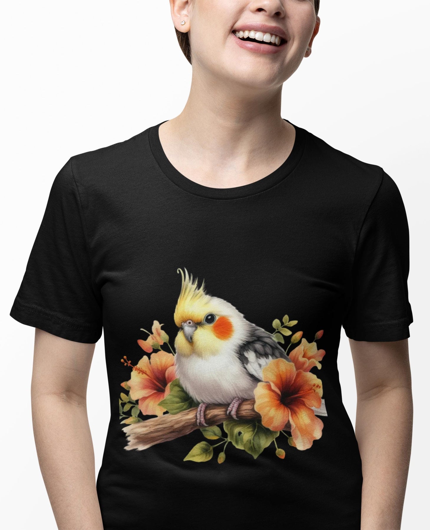 Watercolor Floral Cockatiel T-Shirt | Cockatiel Lover Bird Mom Tee