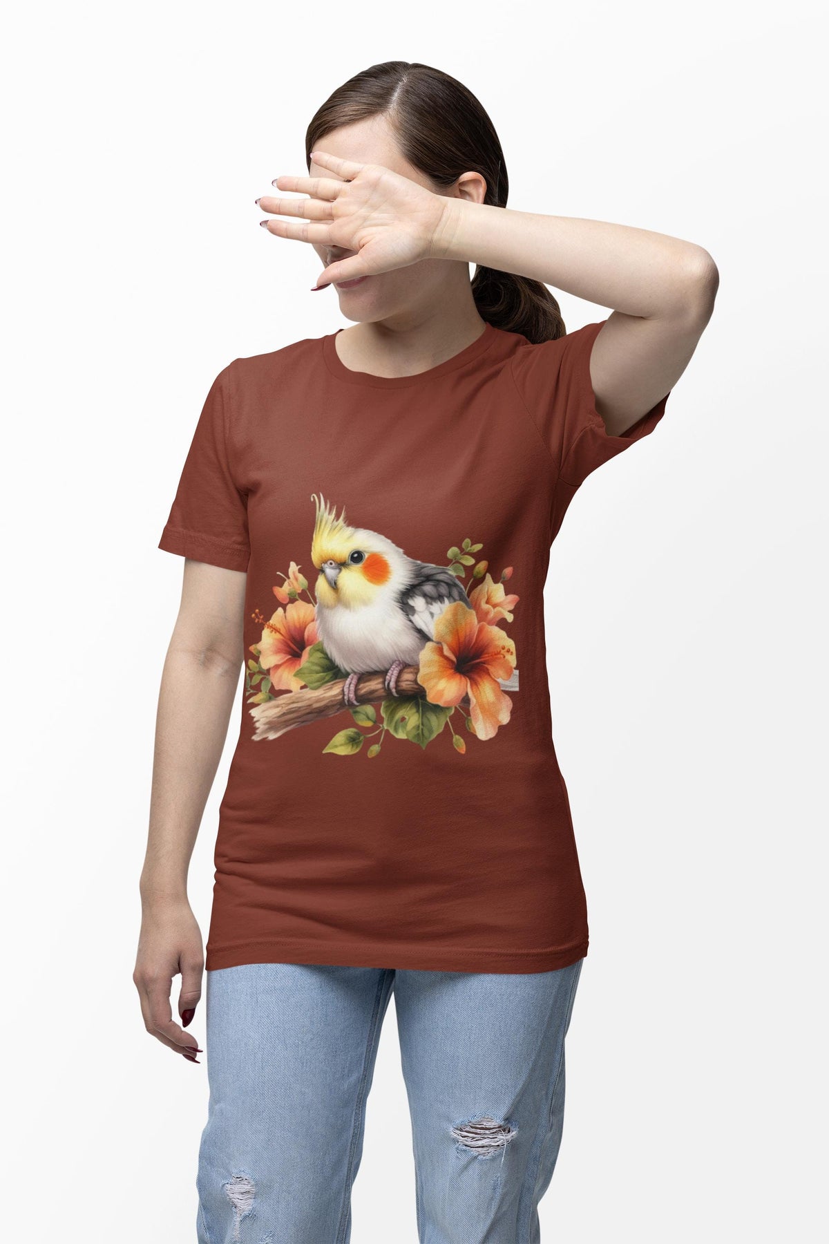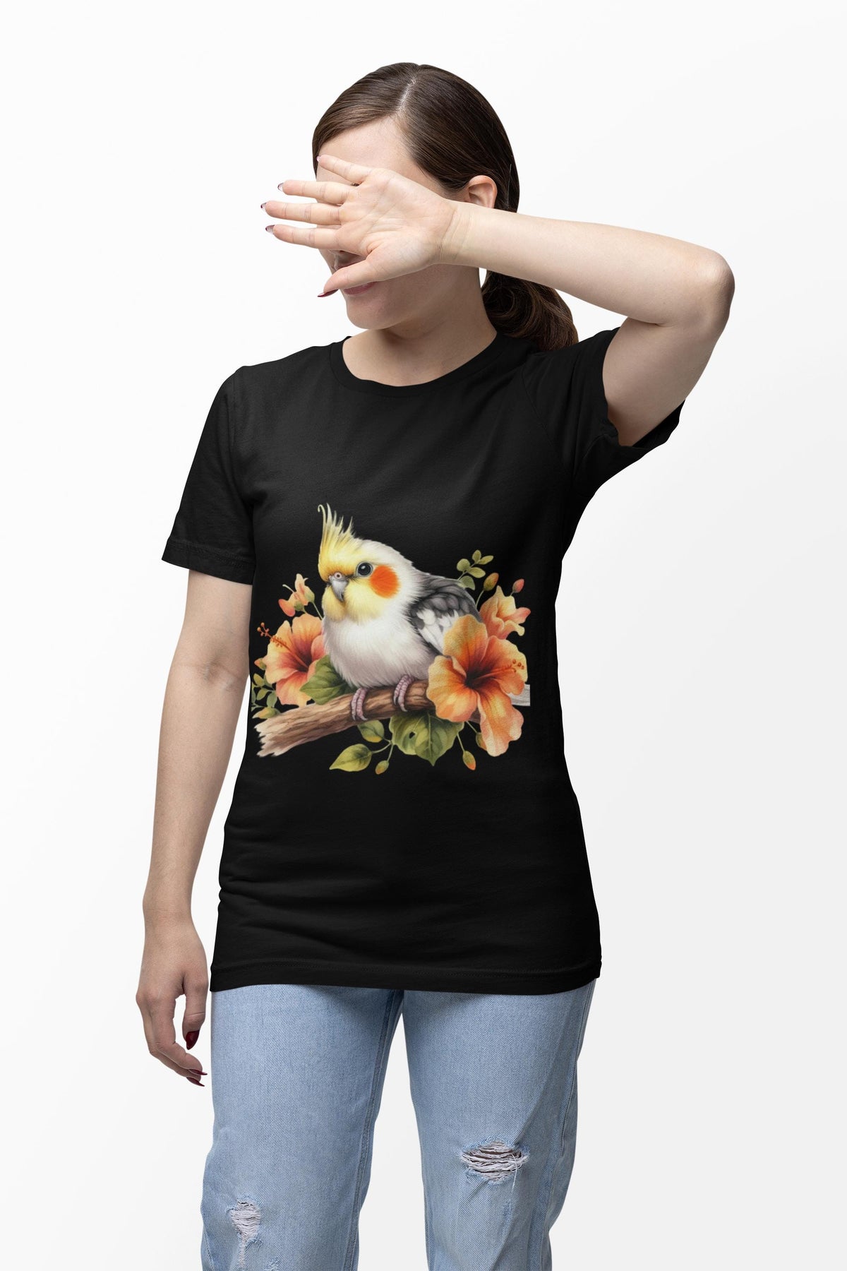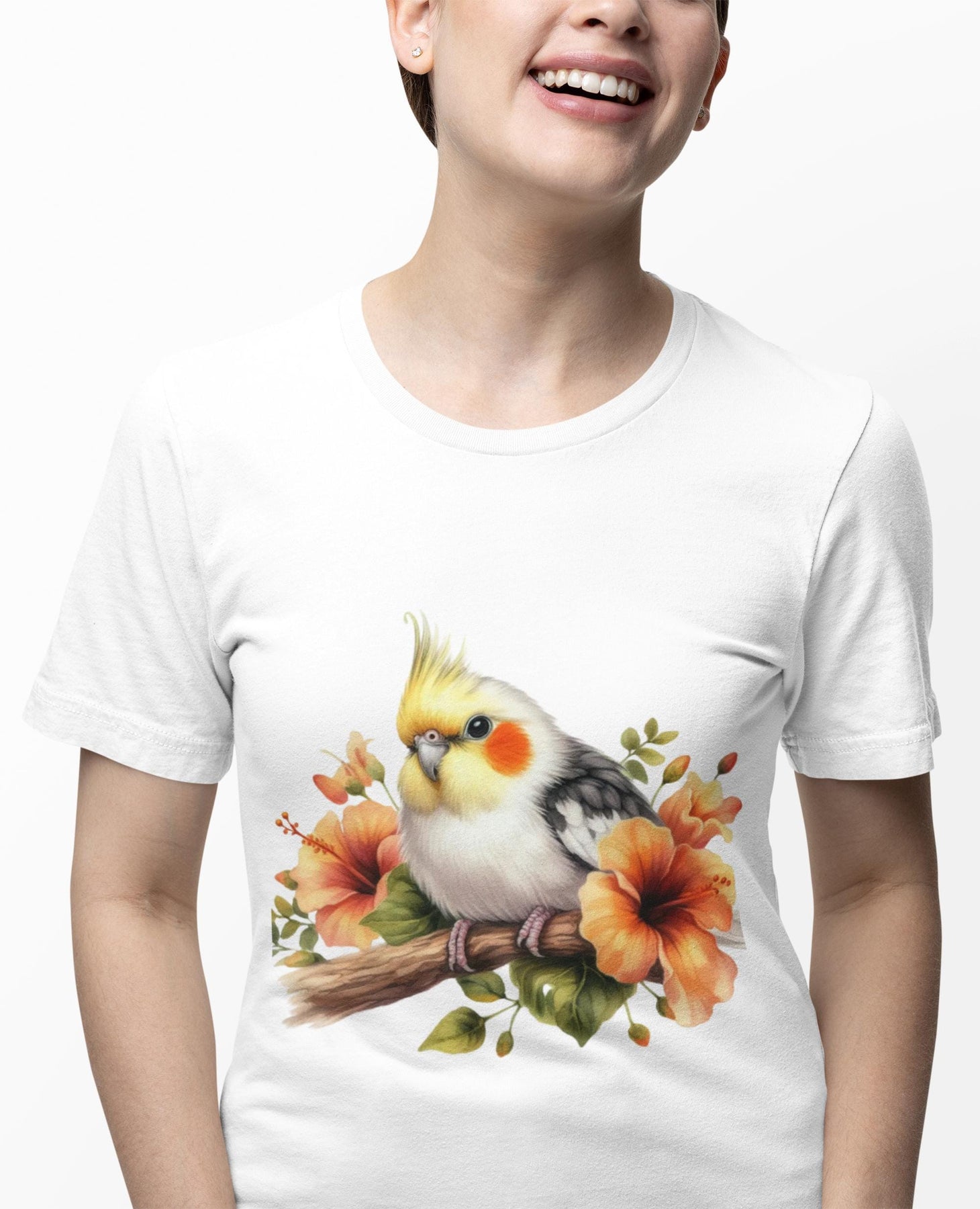 Soft, airy, and softly detailed — this tee brings a watercolour cockatiel to life on a lightweight Bella Canvas jersey. The gentle floral accents and delicate brush-stroke plumage feel like a quiet morning shared with a curious bird on your shoulder. It settles into everyday moments: brunch chats, slow walks with a carrier, or cozy afternoons reorganizing a cage and trading tips with fellow bird lovers. The retail fit and classic crew neck let the art sit prominently while keeping the silhouette simple and wearable. For someone who names their cockatiel, frames botanical prints, and collects feathered stories, this shirt reads like a small, constant celebration of that companionship — wearable warmth that whispers home.