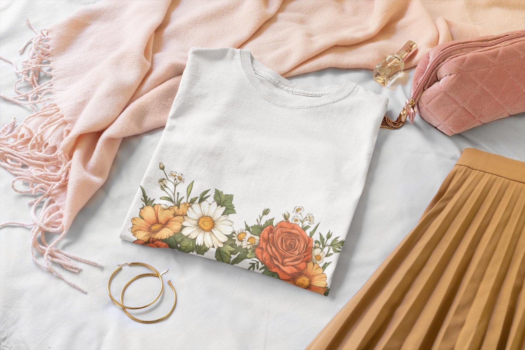 Product features - 100% Airlume combed and ring-spun cotton (lightweight 4.2 oz) for breathable, soft comfort - Ribbed knit collar with seam and retail fit for a neat, stable neckline and flattering silhouette - Side seams and shoulder tape add structure and durability to maintain shape - Tear-away label to reduce skin irritation; REACH certified materials - DTF/DTG printed options for crisp, detailed floral design; made in respectful, certified facilities Care instructions - Machine wash: cold (max 30C or 90F) - Non-chlorine: bleach as needed - Tumble dry: low heat - Iron, steam or dry: medium heat - Do not dry clean