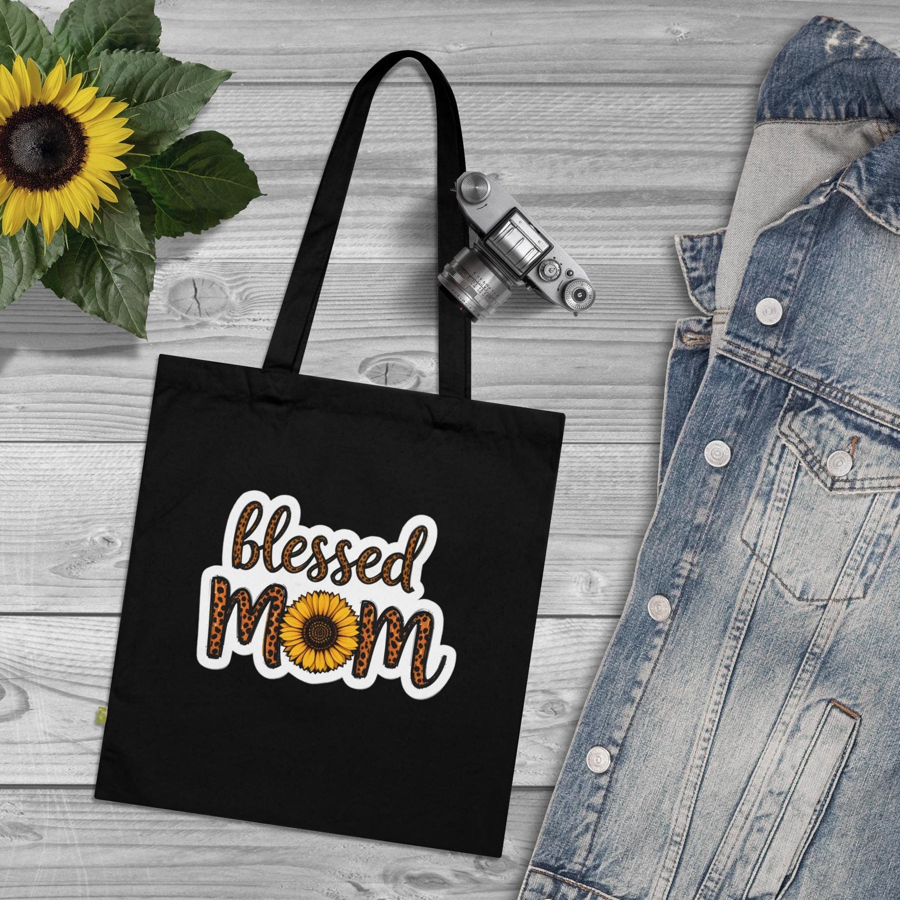 Blessed Mom Sunflower Leopard Print Tote Bag | Organic Cotton Tote