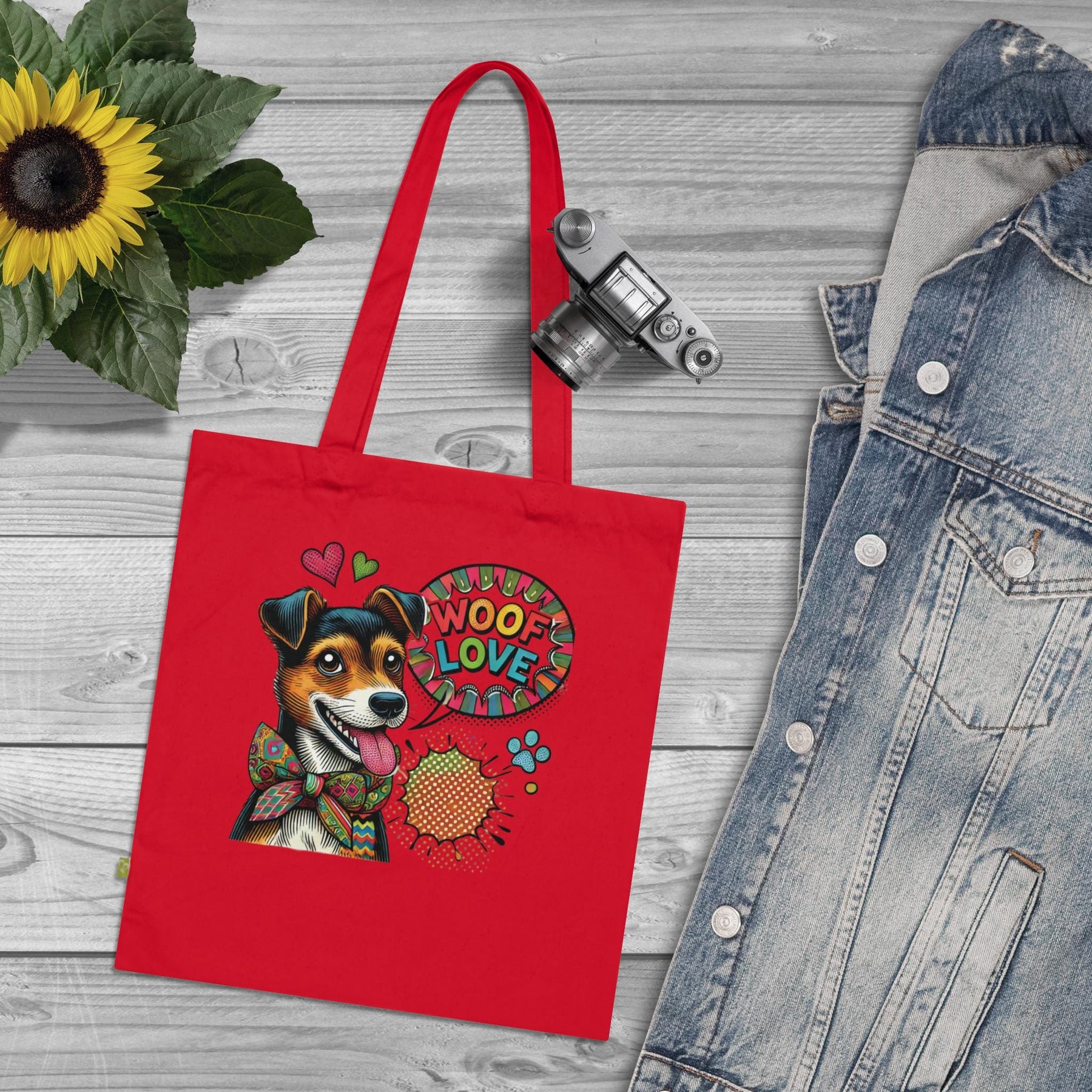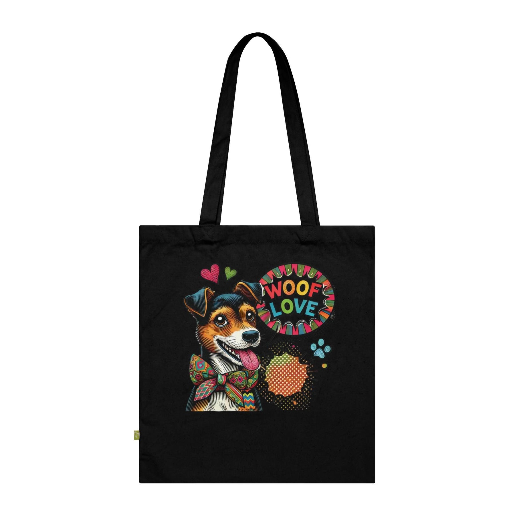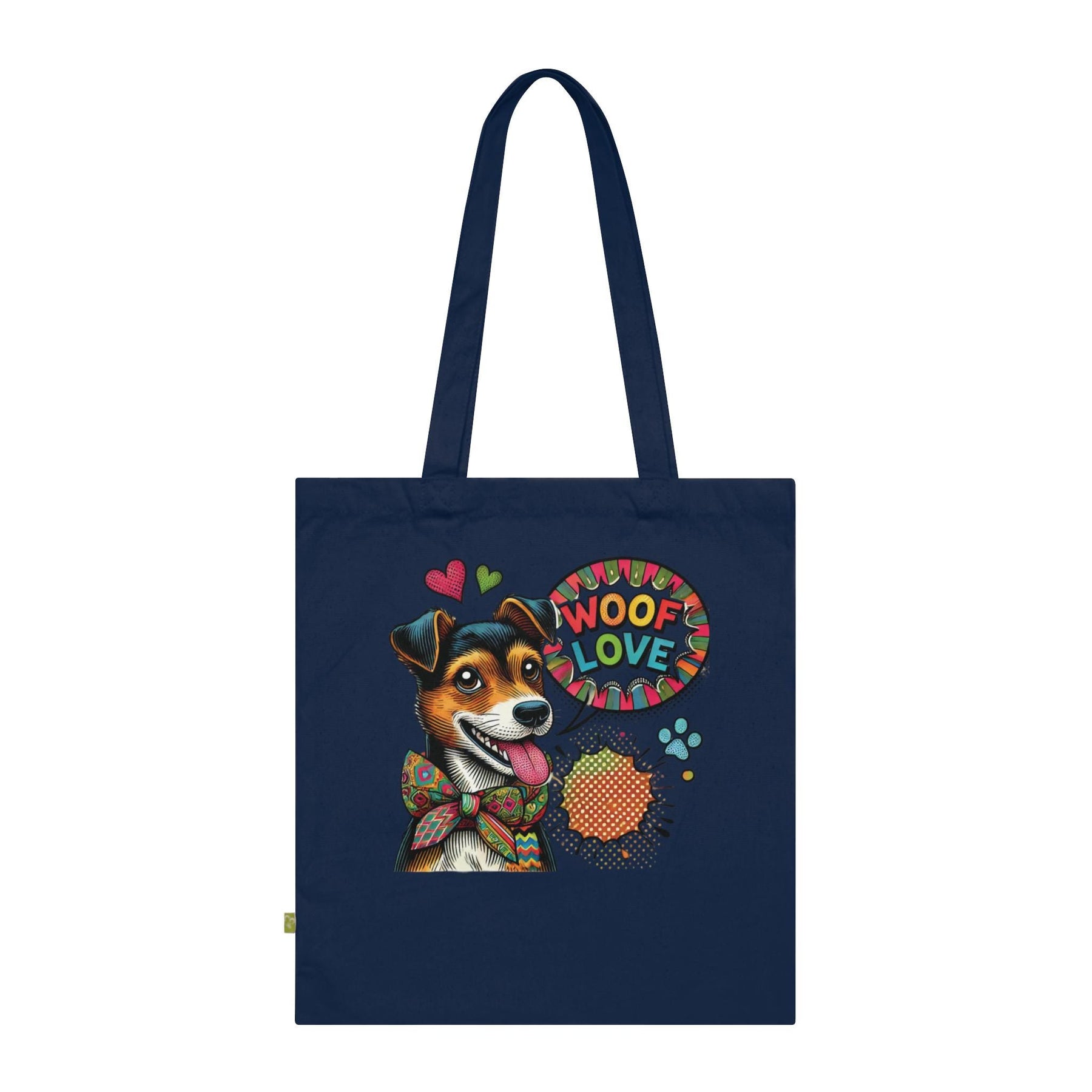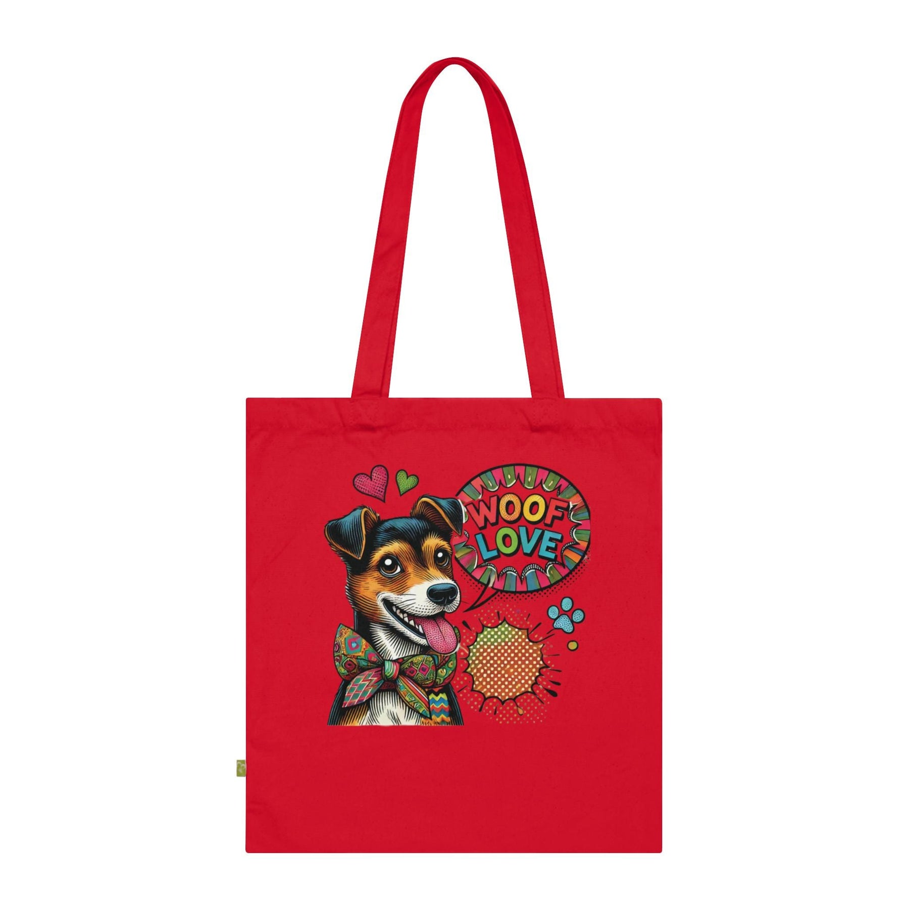 Woof Love Pop Art Jack Russell Tote Bag | Organic Cotton Dog Mom Canvas Tote