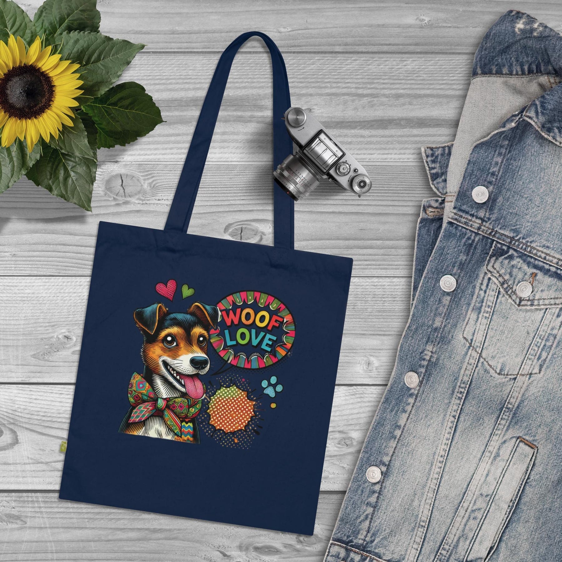 A cheerful, durable canvas tote that celebrates dog-loving life with bold pop-art energy. The Woof Love design pops across heavy organic cotton, brightening errands, dog park walks, and market mornings. It feels substantial in hand yet soft to the touch—built to carry groceries, training gear, or a stack of books while showing off Jack Russell pride. Reinforced handles and high-quality printing mean the art stays vibrant through repeated use. Bring a little canine personality to everyday routines and small adventures.